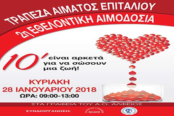 Α.Ο. Αλφειός Επιταλίου: Την Κυριακή 28 Ιανουαρίου η 2η Εθελοντική Αιμοδοσία