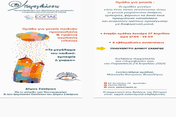 Ομάδα Γονέων στη Ζαχάρω για την ενίσχυση της ψυχοκοινωνικής ανάπτυξης των παιδιών