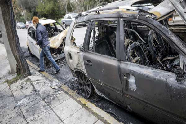 Μπαράζ εμπρηστικών επιθέσεων στο Κολωνάκι -Εκαψαν 7 αυτοκίνητα κοντά στην αμερικανική πρεσβεία