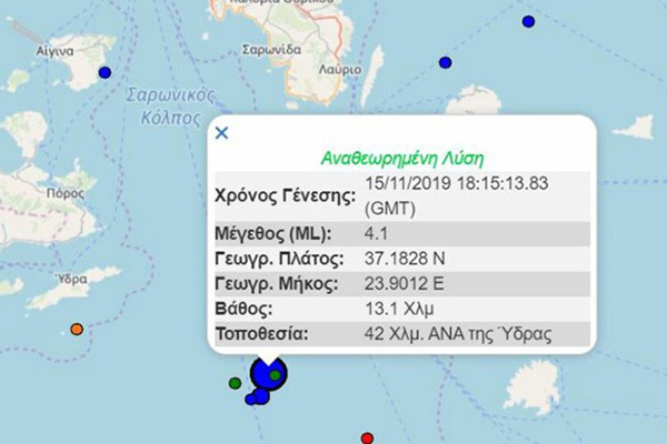 Σεισμός 4,1 Ρίχτερ κοντά στην Ύδρα – Έγινε αισθητός και στην Αθήνα
