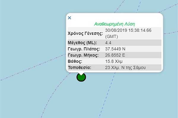 «Χορός» Ρίχτερ στη Σάμο: Τρεις δονήσεις από 3,4 έως 4,4 Ρίχτερ