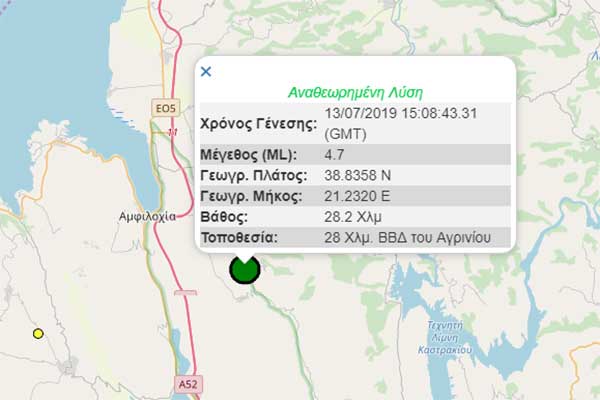 Σεισμός 4,7 Ρίχτερ στην Αμφιλοχία – Αισθητός σε πολλές περιοχές
