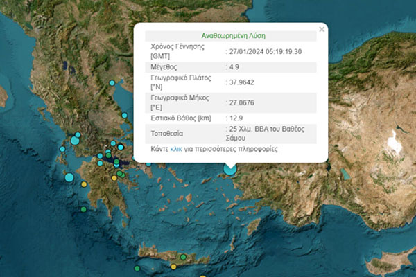 Σεισμός 4,9 Ρίχτερ μεταξύ Σάμου και Τουρκίας