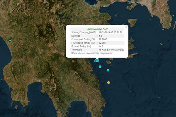 Σεισμός 4,8 Ρίχτερ κοντά στο Λεωνίδιο - Αισθητός και σε περιοχές της Αττικής