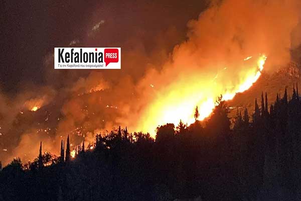 Φωτιά στην Κεφαλονιά: Μαίνεται το μέτωπο στην Αγία Ειρήνη -Ενισχύονται οι δυνάμεις