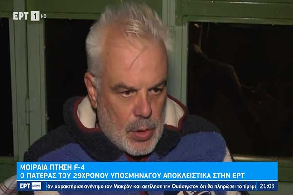 Πτώση μαχητικού F-4: «Φεύγω, γιατί το πρωί πετάω – Πέταξε και τέλος», λέει ο πατέρας του 29χρονου νεκρού πιλότου