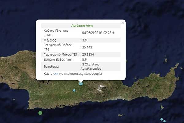 Σεισμός στην Κρήτη: Στο Αρκαλοχώρι Ηρακλείου το επίκεντρο