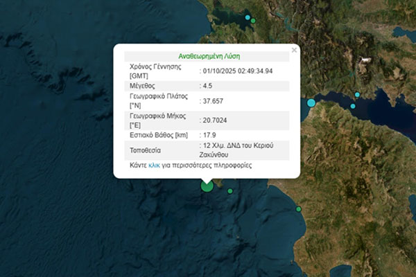 Σεισμός 4,5 Ρίχτερ στα ανοιχτά της Ζακύνθου