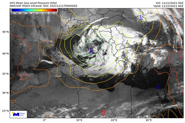 Δορυφορική εικόνα του χαμηλού που προκαλεί το νέο κύμα κακοκαιρίας – Πάνω από 100 χιλιοστά βροχής κατά τόπους στα δυτικά έως το πρωί του Σαββάτου