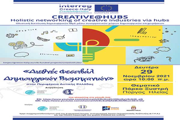 «Διεθνές Φεστιβάλ Δημιουργικών Βιομηχανιών» από την Περιφέρεια Δυτικής Ελλάδας