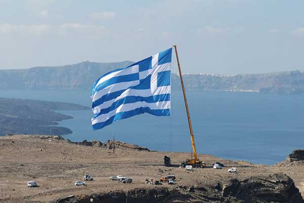 28η Οκτωβρίου: Η μεγαλύτερη ελληνική σημαία υψώθηκε στη Σαντορίνη – Εντυπωσιακά πλάνα