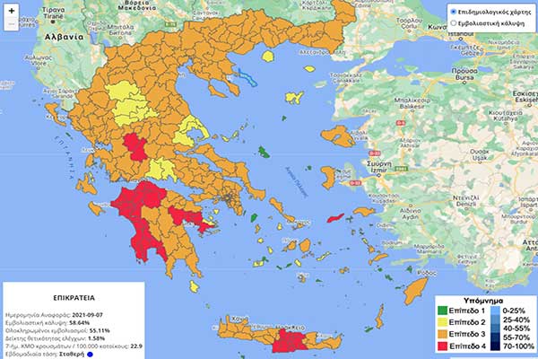 Στο «κόκκινο» από σήμερα Αργολίδα και Ευρυτανία - Ο επιδημιολογικός χάρτης