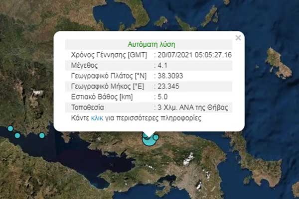 Σεισμός 4,1 Ρίχτερ στη Θήβα - Έγινε αισθητός και στην Αττική