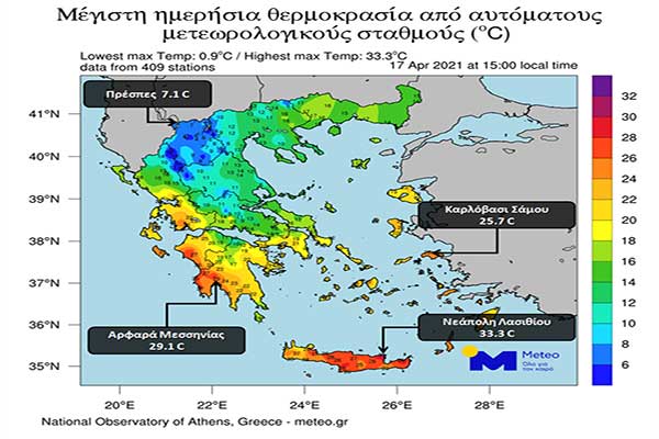 Καιρός: Άνοιξε η «ψαλίδα» των μεγίστων θερμοκρασιών: 7 βαθμούς στις Πρέσπες, 33 στην Κρήτη!