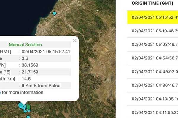 Πάτρα: Έξι σεισμοί από τα ξημερώματα νότια της πόλης - 3,5 Ρίχτερ ο ισχυρότερος