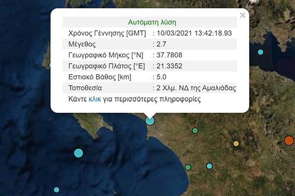 Ηλεία: Ασθενής σεισμική δόνηση 2,7 Ρίχτερ - Στην Αμαλιάδα το επίκεντρο