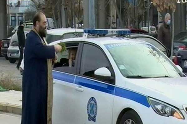 Θεοφάνεια: Ιερέας ράντισε με αγιασμό περιπολικά της ΕΛΑΣ