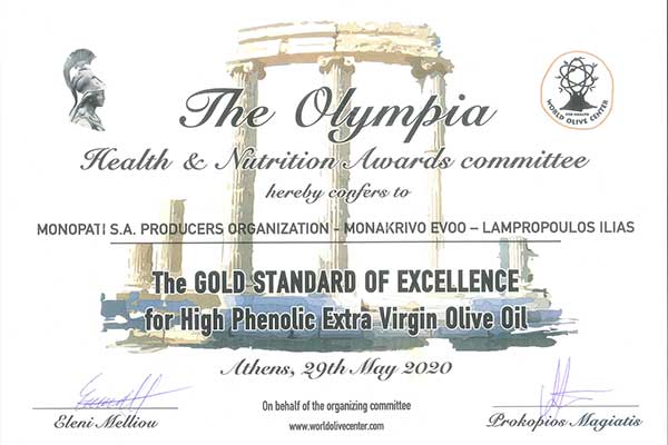 Monakrivo εξαιρετικό παρθένο ελαιόλαδο: Χρυσό βραβείο για 2η συνεχόμενη χρονιά