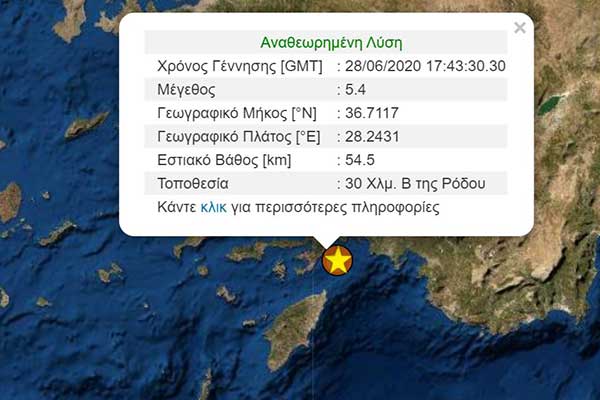 Σεισμός 4,7 ανοιχτά της Ρόδου - Ταρακουνήθηκε ξανά το νησί