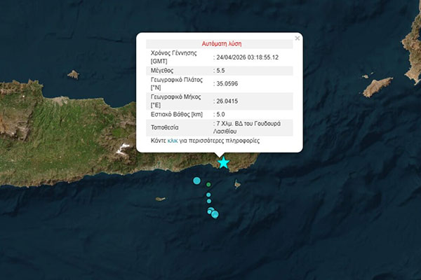 Ισχυρός σεισμός 5,7 Ρίχτερ ανοιχτά του Λασιθίου, έγινε αισθητός σε όλη την Κρήτη