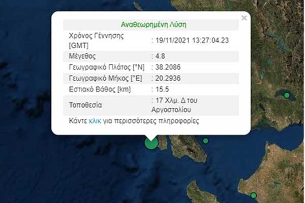 Ο σεισμός έλαβε χώρα 17 χιλιόμετρα δυτικά του Αργοστολίουστις 15:27 και είχε εστιακό βάθος 15.5 χιλιομέτρων.