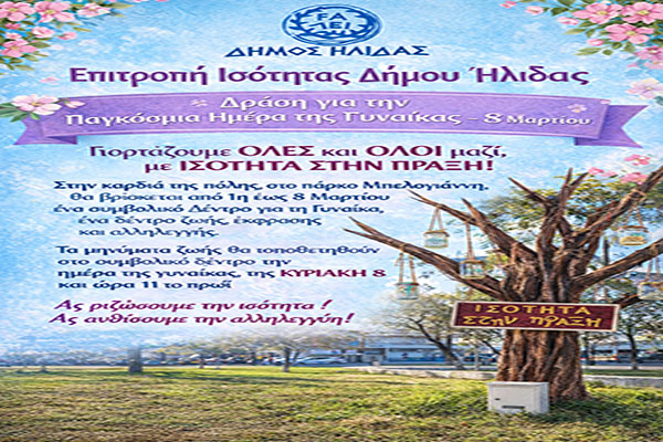 Δήμος Ήλιδας: Το συμβολικό Δέντρο της Γυναίκας ανθίζει στην Αμαλιάδα – «Ριζώνουμε την Ισότητα, μοιραζόμαστε τη Ζωή»