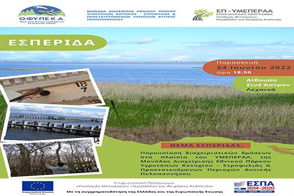 Ενημερωτική Εσπερίδα από το Εθνικό Πάρκο Υγροτόπων Κοτυχίου- Στροφυλιάς στα Λεχαινά