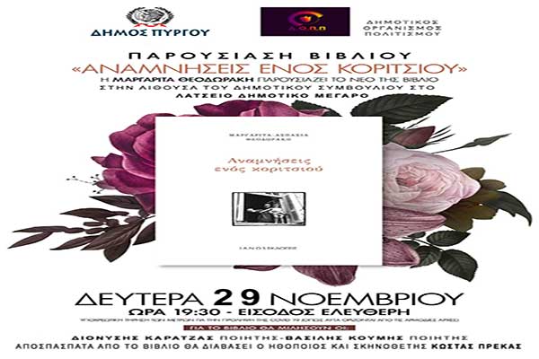 Ο Δήμος Πύργου παρουσιάζει το βιβλίο της Μαργαρίτας Θεοδωράκη «Αναμνήσεις ενός κοριτσιού»