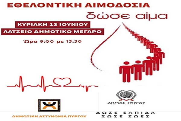Εθελοντική αιμοδοσία από τη Δημοτική Αστυνομία Πύργου - "Δωρίζουμε ζωή"