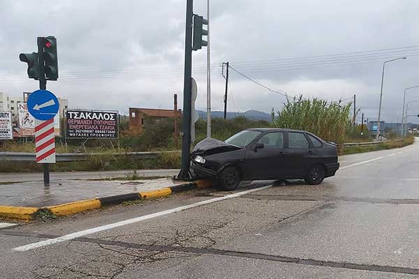 Πύργος: ΙΧ έπεσε σε φανάρι στον κόμβο Φιλοθέης