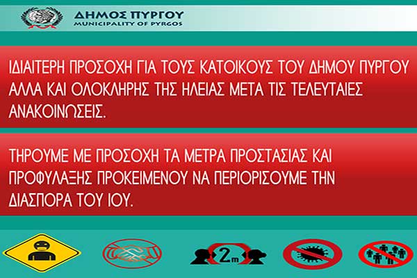 Δήμος Πύργου: "Το ιϊκό φορτίο της περιοχής μας είναι ιδιαίτερα αυξημένο-Τηρούμε όλα τα μέτρα"