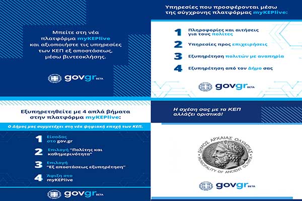 Σε λειτουργία το myKEPlive στο Δήμο Αρχαίας Ολυμπίας