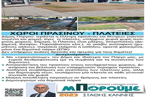 Στάθης Καννής: «Χώροι Πρασίνου-Πλατείες - Δεσμευόμαστε»