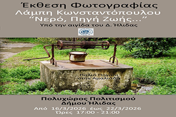 Μια ξεχωριστή έκθεση φωτογραφίας του Λάμπη Κωνσταντόπουλου «Νερό – Πηγή Ζωής», στον Πολυχώρο Πολιτισμού Αμαλιάδας υπό την αιγίδα του Δήμου Ήλιδας
