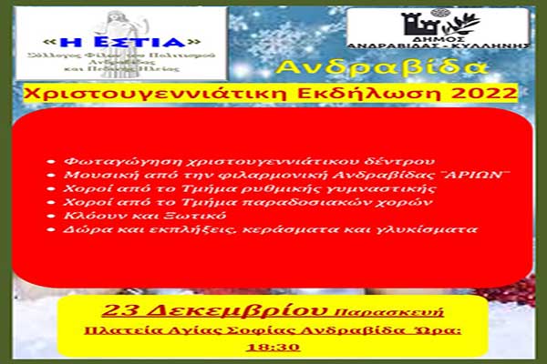 Αύριο η φωταγώγηση του Χριστουγεννιάτικου Δέντρου στην Ανδραβίδα