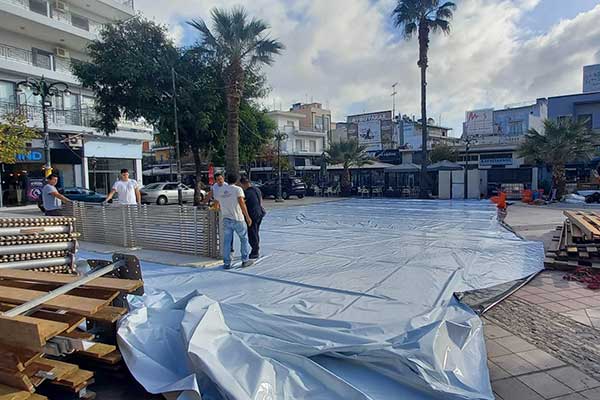 Ξεχωρίζει το χριστουγεννιάτικο παγοδρόμιο στην Αμαλιάδα το οποίο θα τεθεί στη διάθεση του κοινού πολύ σύντομα με την ολοκλήρωση των εργασιών εγκατάστασης