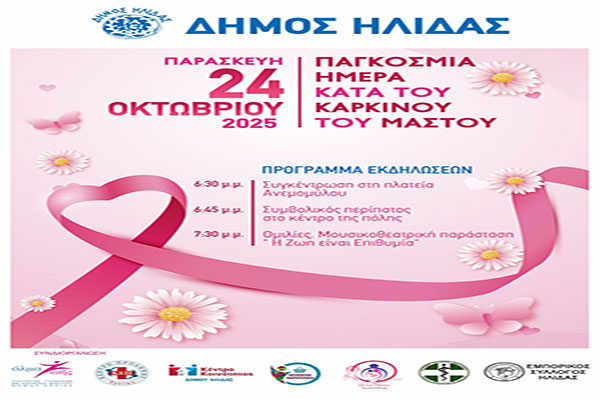 Δήμος Ήλιδας: Και φέτος η «ροζ» παρέλαση στην Αμαλιάδα – Ο καρκίνος του μαστού δεν περιμένει – Η έγκαιρη διάγνωση σώζει ζωές