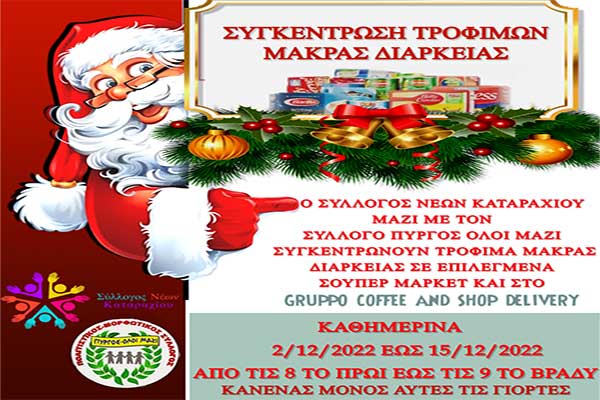 Σύλλογος Νέων Καταραχίου-Σύλλογος "Πύργος-Όλοι Μαζί": Συγκέντρωση τροφίμων μακράς διαρκείας