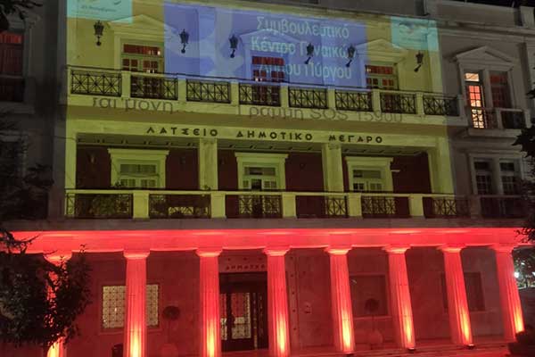 Το Λάτσειο Δημοτικό Μέγαρο φωταγωγείται με χρώματα και μηνύματα κατά της βίας των γυναικών