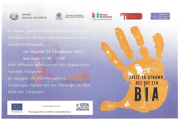 Αρχαία Ολυμπία:Εκδήλωση για την εξάλειψη της βίας κατά των γυναικών