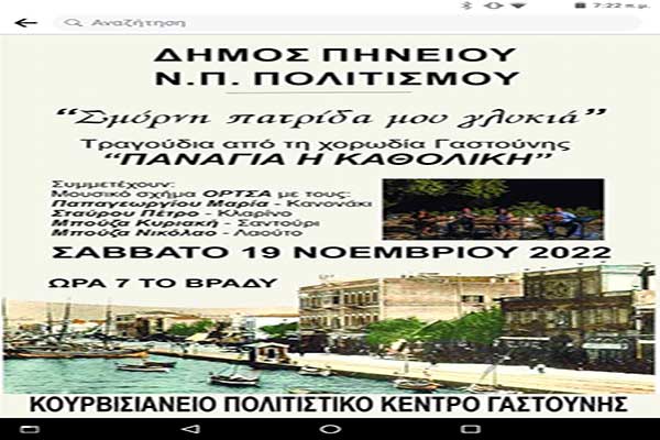 Γαστούνη: Εκδήλωση στο Κουρβισιάνειο-«Σμύρνη πατρίδα μου γλυκιά»