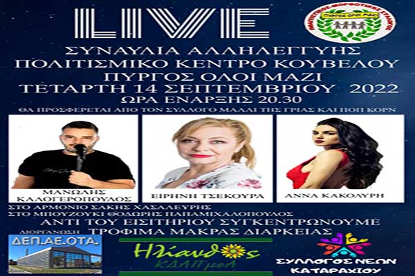 Σύλλογος Πύργος Όλοι Μαζί: Συναυλία αλληλεγγύης την Τετάρτη 14 Σεπτεμβρίου στο Πολιτισμικό Κέντρο Κούβελου