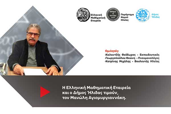 Τη Δευτέρα 11 Ιουλίου η τιμητική εκδήλωση για τον Μανώλη Αγιομυργιαννάκη από τη Μαθηματική Εταιρία και το Δήμο Ήλιδας