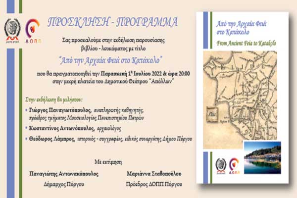 Δήμος Πύργου: Παρουσιάζεται την Παρασκευή το βιβλίο «Από την Αρχαία Φειά στο Κατάκολο»