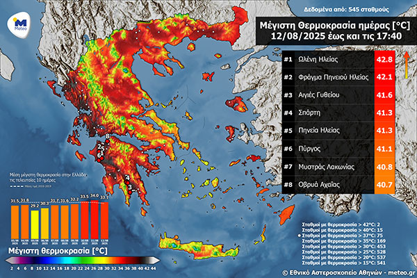 Ηλεία: Ξεπέρασε τους 42°C η θερμοκρασία την Τρίτη 12 Αυγούστου
