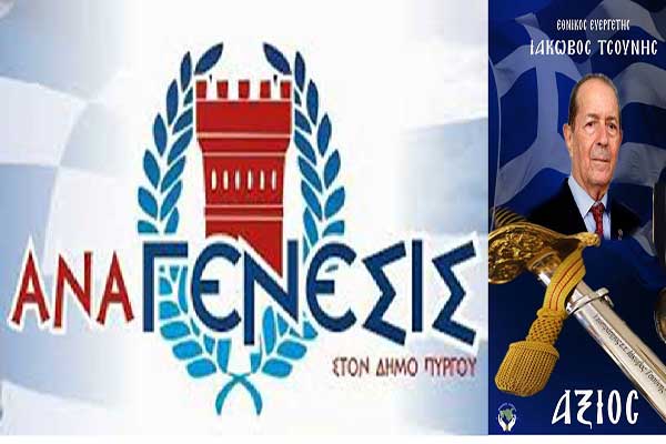 Πρόταση ΑΝΑΓΕΝΕΣΙΣ στην Δημοτική Αρχή Πύργου: "Επίτιμος δημότης ο Ιάκωβος Τσούνης"