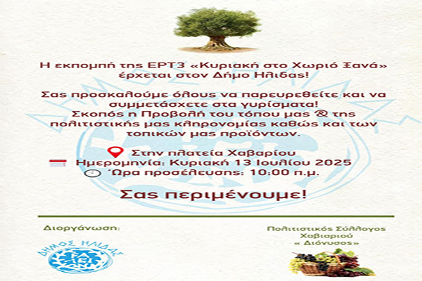Η ΕΡΤ3 και η εκπομπή «Κυριακή στο Χωριό Ξανά» στο Χάβαρι του Δήμου Ήλιδας