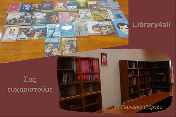 1ο Γυμνάσιο Πύργου: Εμπλουτισμός της Σχολικής Βιβλιοθήκης με τη στήριξη του Library4all