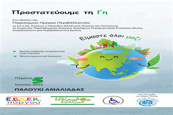Παγκόσμια Ημέρα Περιβάλλοντος 2025 - Δράση καθαρισμού και πολιτιστικές εκδηλώσεις στην παραλία Παλούκι Αμαλιάδας