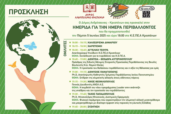 Δήμος Ανδρίτσαινας-Κρεστένων: Σημαντική ημερίδα στα πλαίσια της Ημέρας Περιβάλλοντος